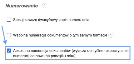 W Fakturowni możesz mieć wpływ na sposób numerowania Twoich dokumentów. Jedną z opcji numeracji, którą możesz skonfigurować w systemie, jest możliwość zachowania bezwzględnej ciągłości numeracji, co oznacza, że z początkiem nowego roku numeracja nie będzie startowała od numeru 1, a będzie kontynuowana. Jak to wygląda w praktyce? Jeżeli faktura wystawiona ostatniego dnia roku poprzedniego będzie miała numer 234, to pierwsza faktura wystawiona w nowym roku będzie miała numer 235. Funkcja ta przydatna jest szczególnie wtedy, gdy w formacie numerowania nie zawierasz roku “yyyy” - zapobiegnie to dublowaniu faktur. Aby ustawić na Twoim koncie opisaną opcję, przejdź do menu Ustawienia > Ustawienia konta > Numerowanie i zaznacz okienko Absolutna numeracja dokumentów: Uwaga: Absolutna numeracja nie zadziała na formaty numerowania, w których jest użyta numeracja dzienna “nr-d” lub miesięczna “nr-m”. Sprawdź także tutorial video w serwisie YouTube: Numerowanie faktur