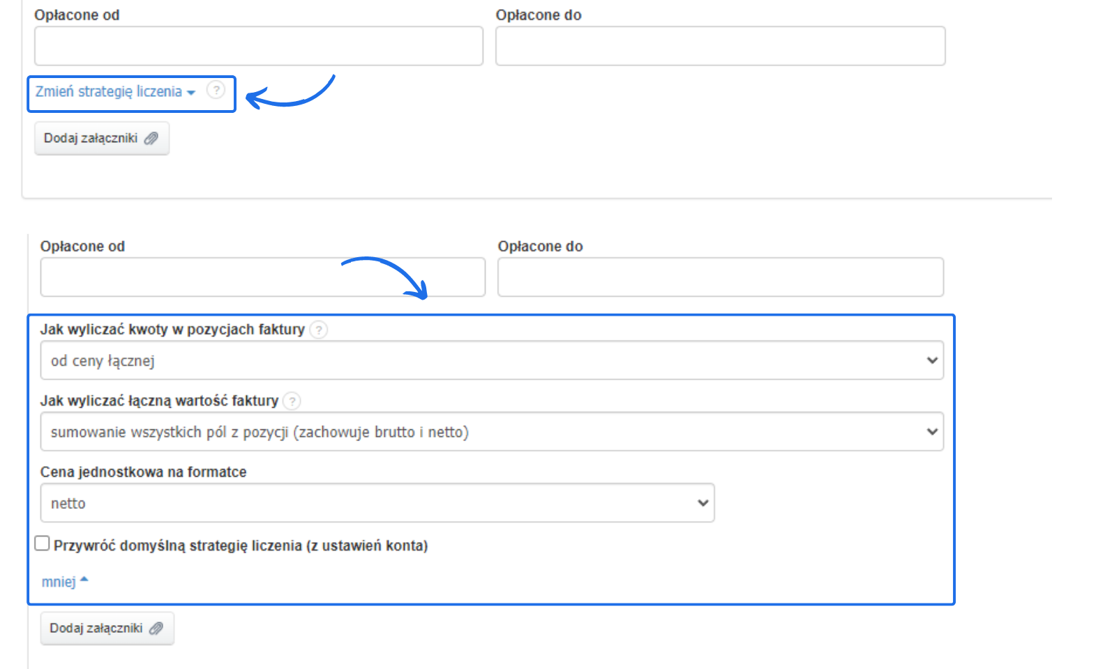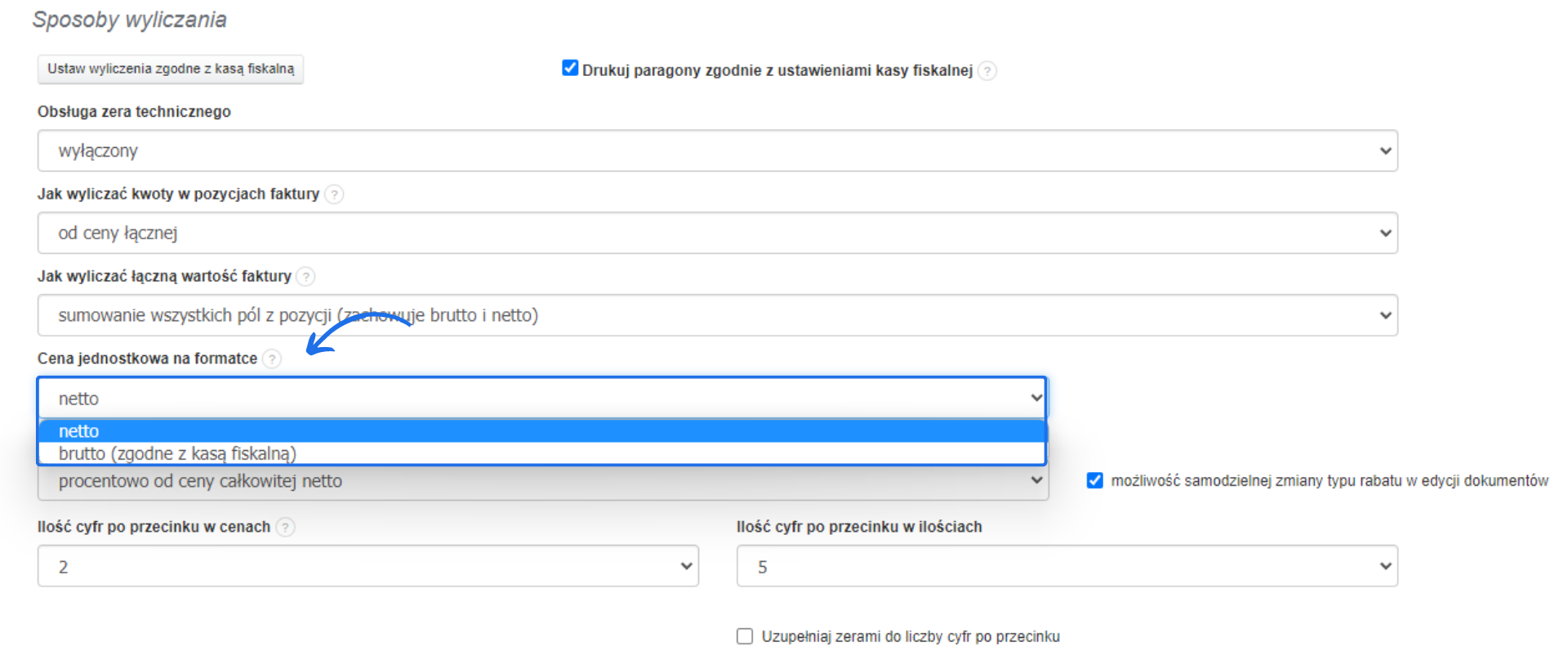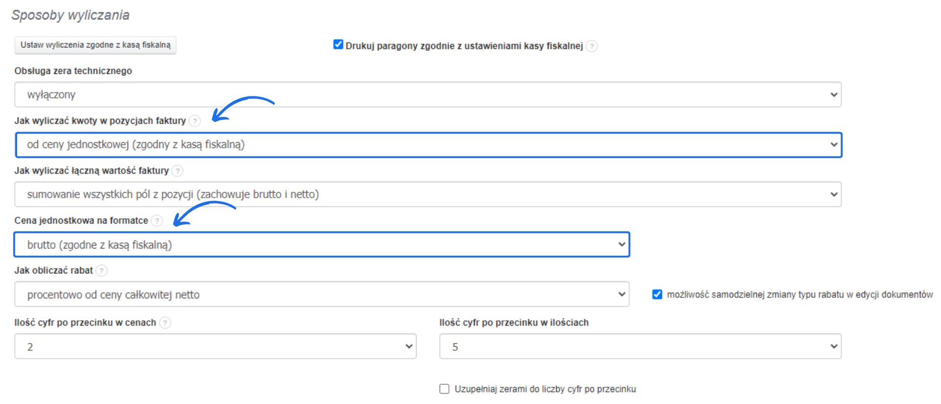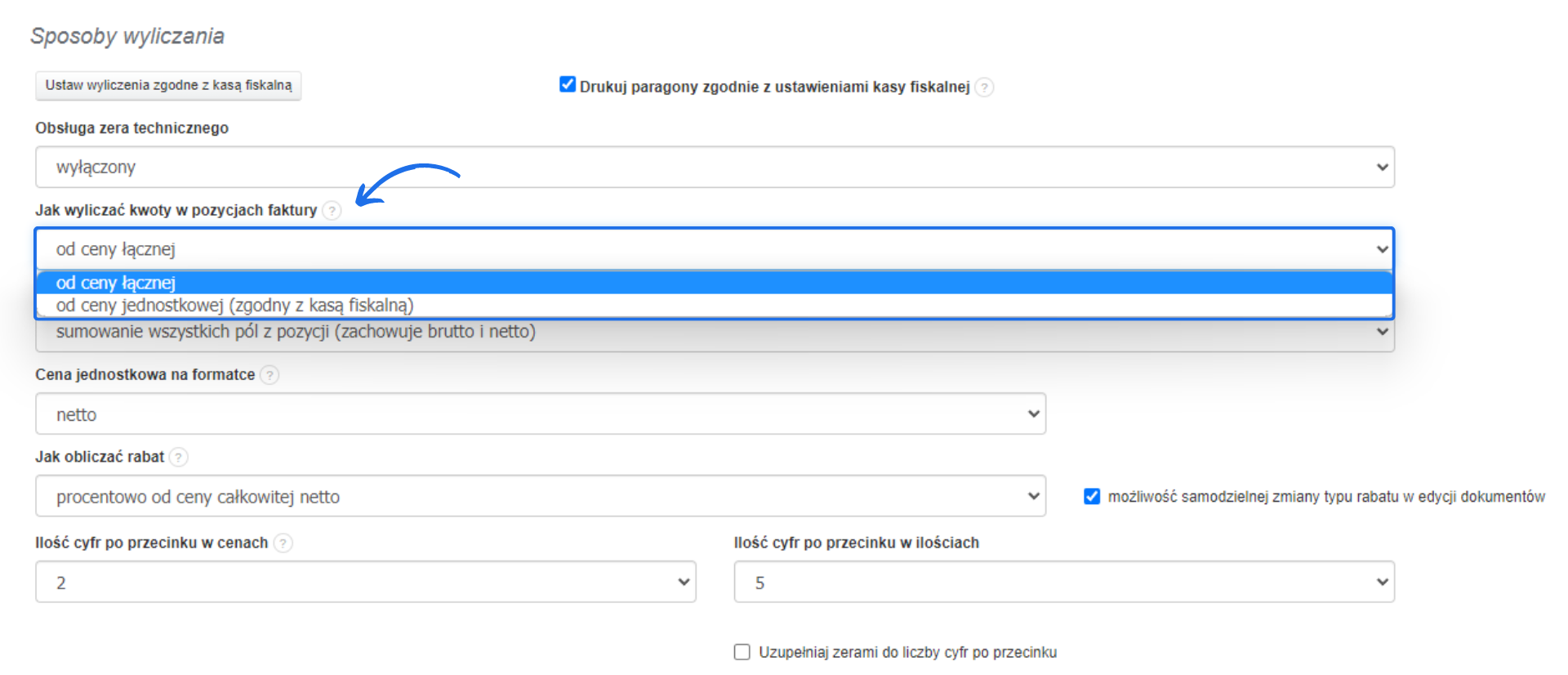 - jak wyliczać kwoty w pozycjach faktury;