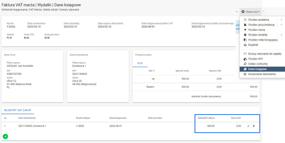 Faktura zakupu w procedurze VAT marża