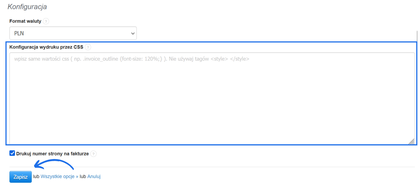 Jeśli korzystasz z szablonu DEFAULT we wskazaną wyżej rubrykę, musisz wkleić następujący kod CSS:} @media all {