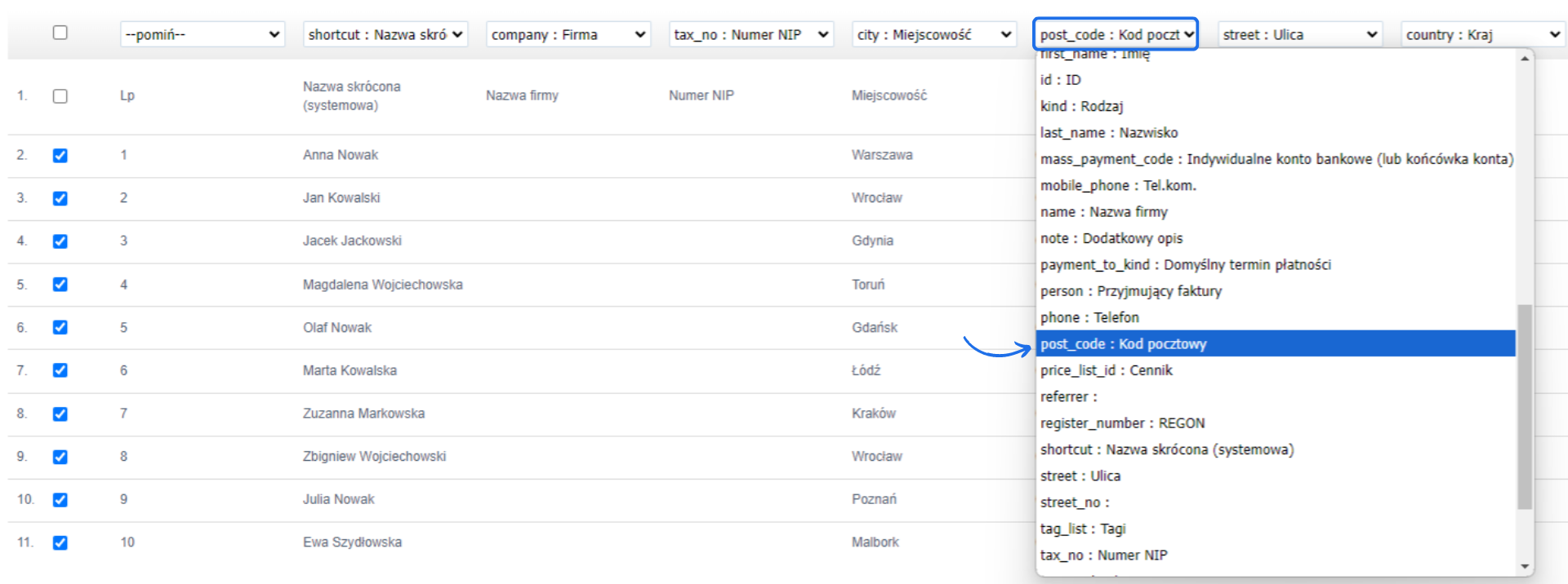 - w kroku drugim importu zweryfikuj poprawność zmiennych przypisanych do kolumn - aby system mógł prawidłowo zaimportować klientów, treść kolumny musi być zgodna z nazwą kolumny, czyli przypisaną zmienną;