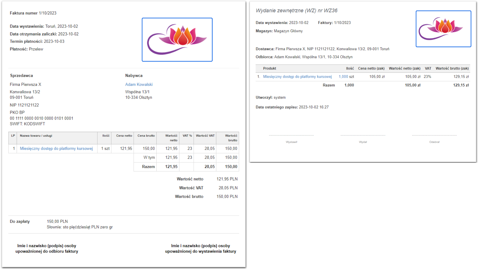 Wyświetlaj logo na dokumentach magazynowych
