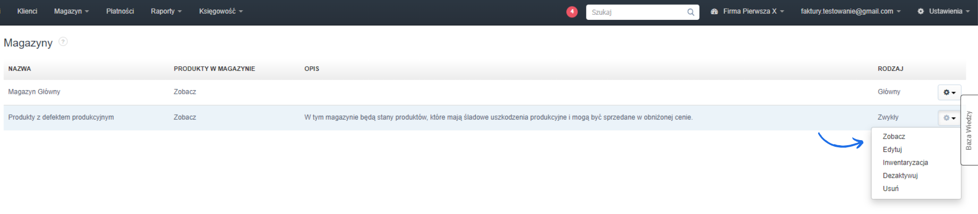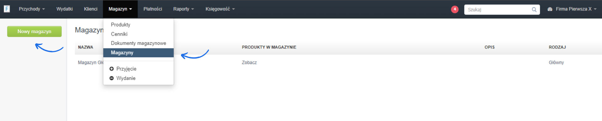 Jeśli w ramach ustawień konta aktywowałeś obsługę magazynową, możesz tworzyć nowe magazyny. Aby dodać magazyn: .- przejdź do zakładki Magazyn > Magazyny;