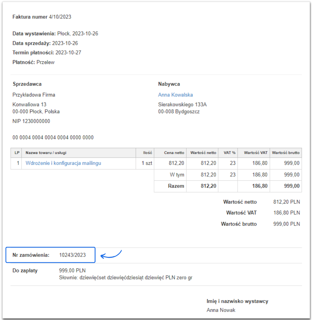 Jak wyświetlić numer zamówienia na wydruku i PDF?