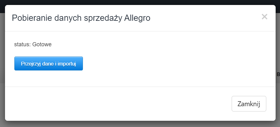 - po zakończeniu pobierania danych zatwierdź przejście do kroku 2 klikając przycisk Przejrzyj dane i importuj.