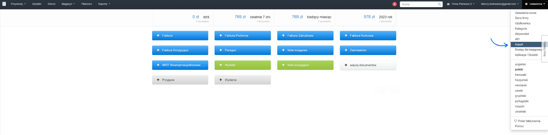 - przejdź do zakładki Ustawienia > Import;