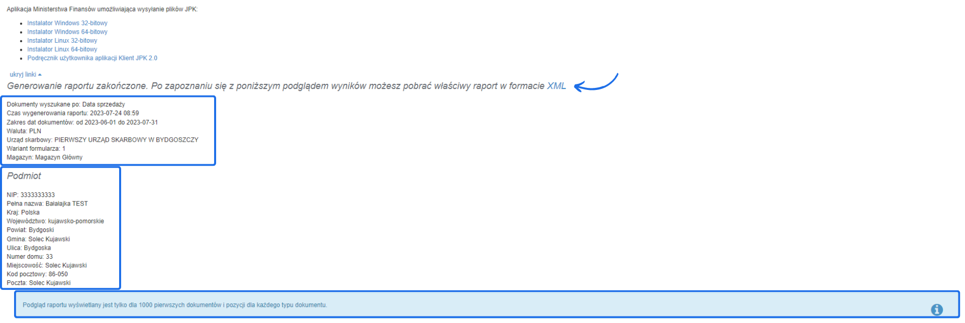 Wybierając zakres dat w raporcie zauważymy, że minimalną datą użycia danych wygenerowanych w programie jest data 1 września 2018 roku.Sprzedaż w walucie a plik JPK